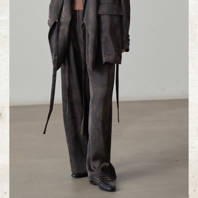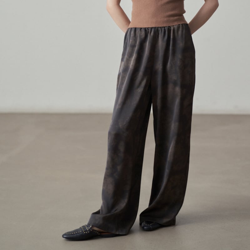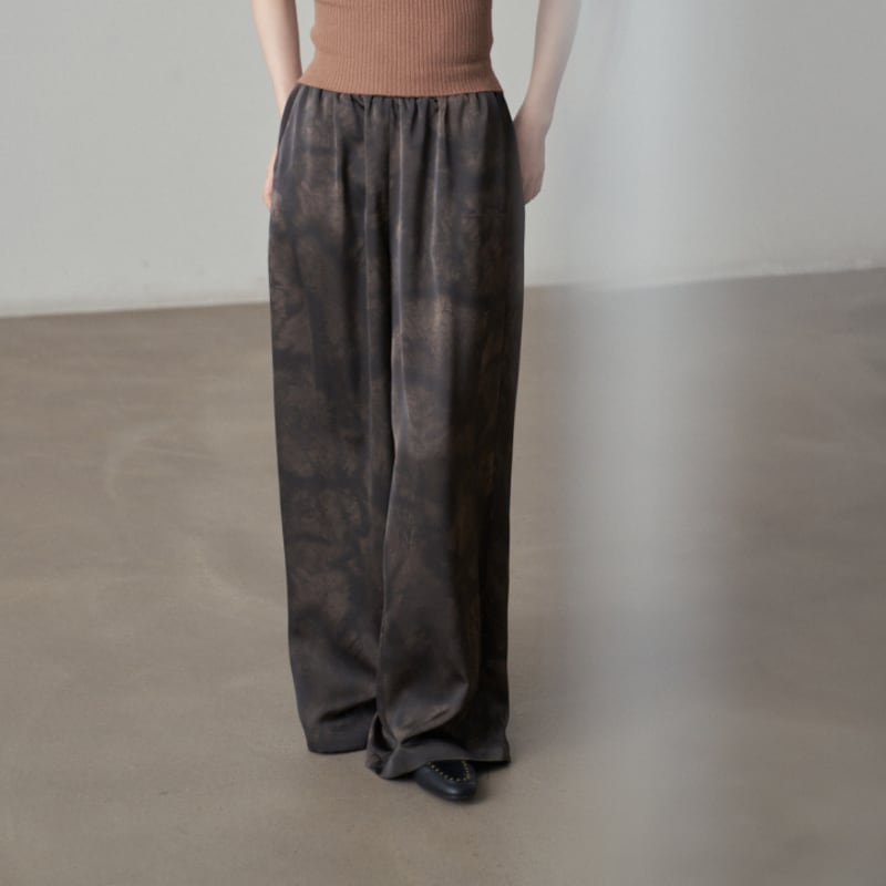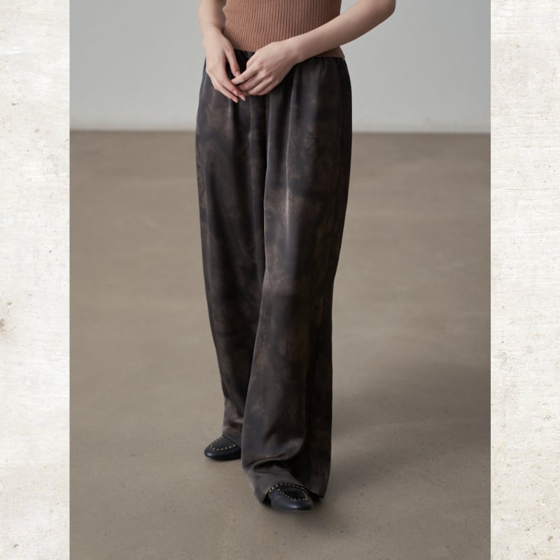 抽象的なタイダイプリントが一目で目を惹くイージーパンツ。