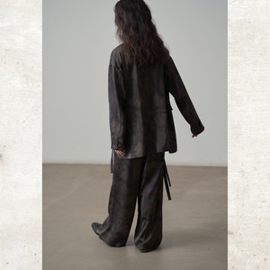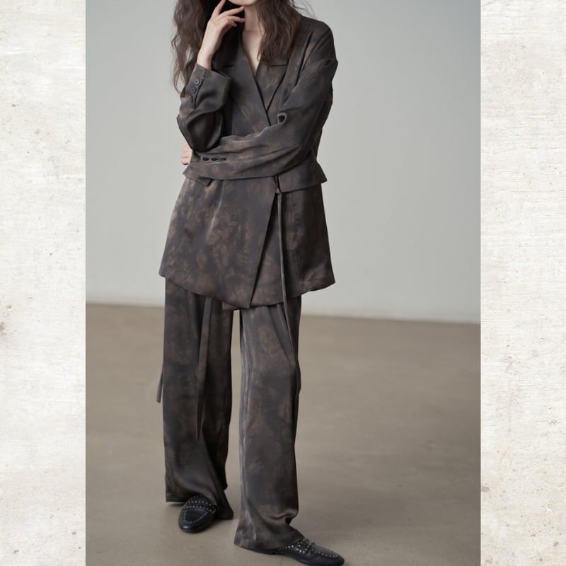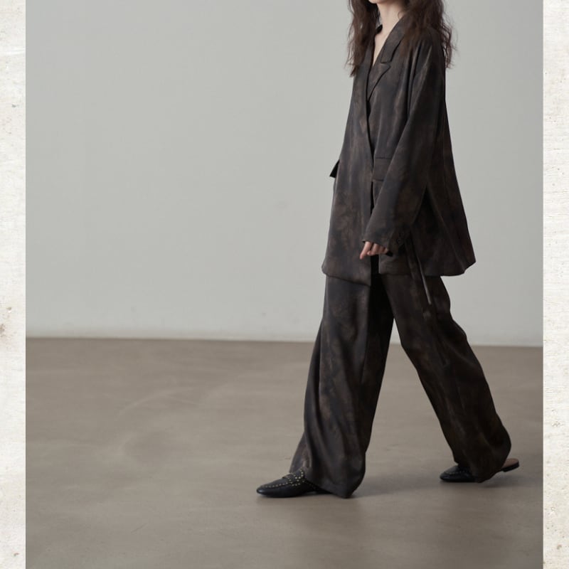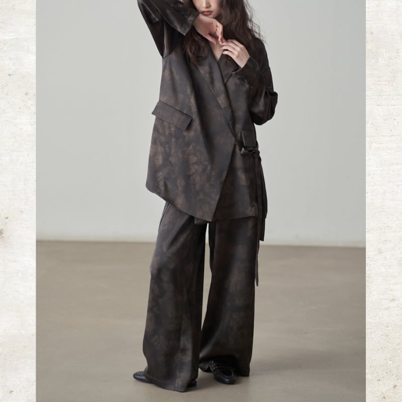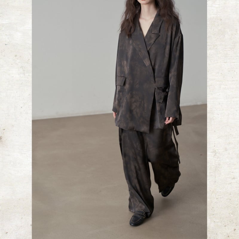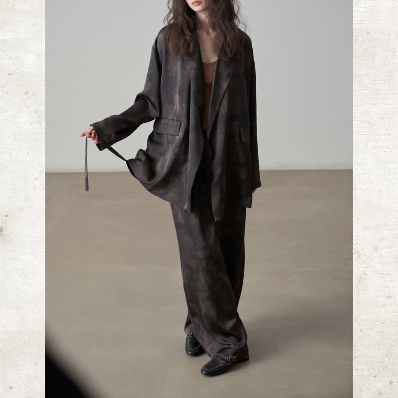 光沢のあるサテン調の素材を使用することで、カジュアルなタイダイ柄にモードな洗練さをプラス。