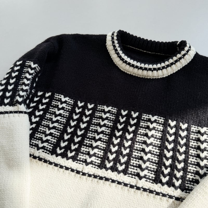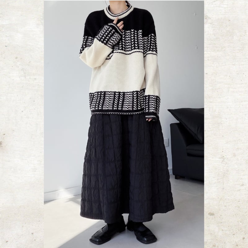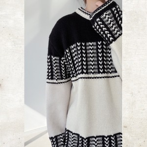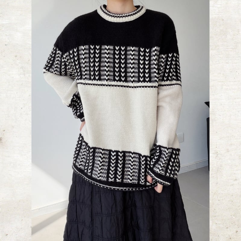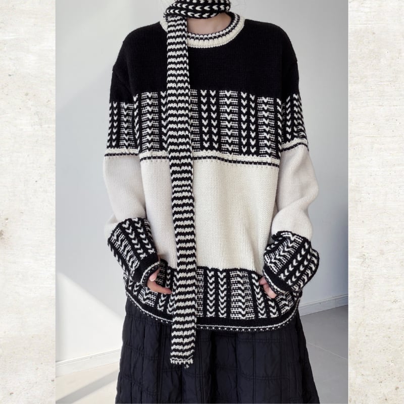 ジオメトリックパターンプルオーバーニット&マフラー