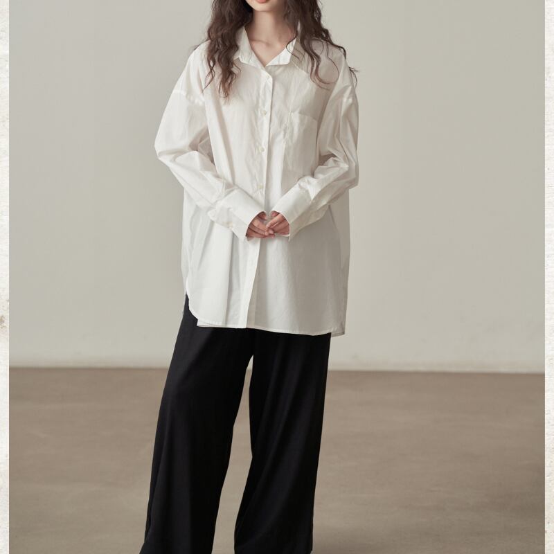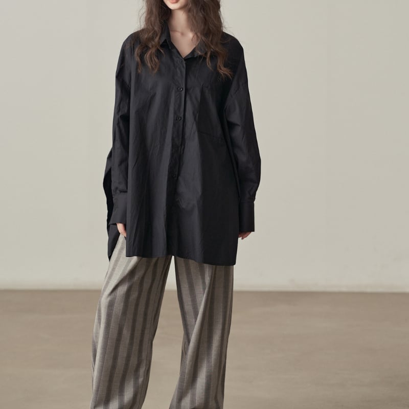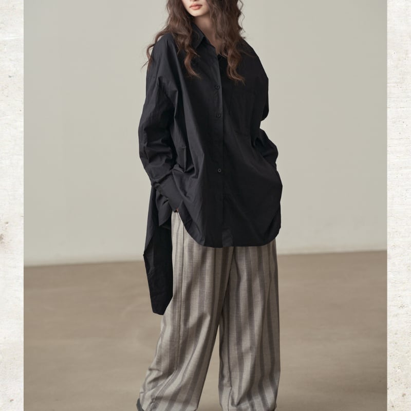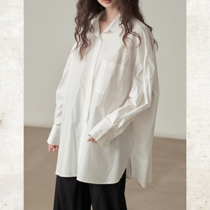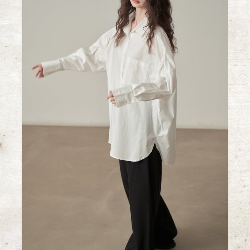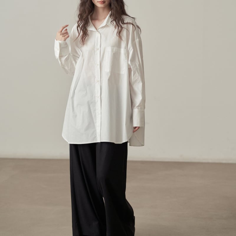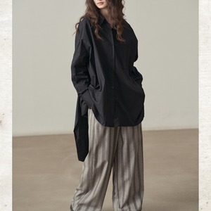 クリーンなオーバーサイズシルエットでありながら、大胆なバックシャンデザインで魅せるシャツ。