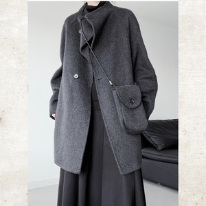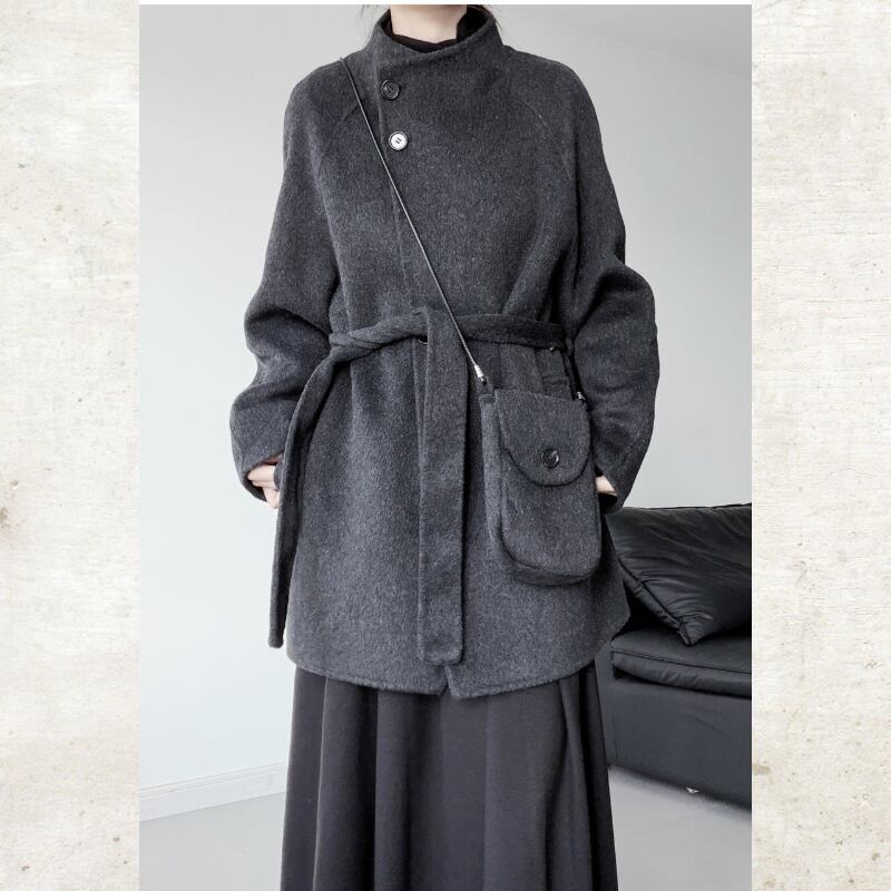 スタンドカラーウールライクミディアムコート