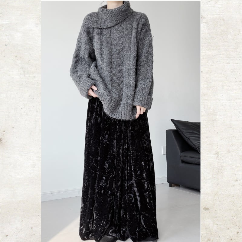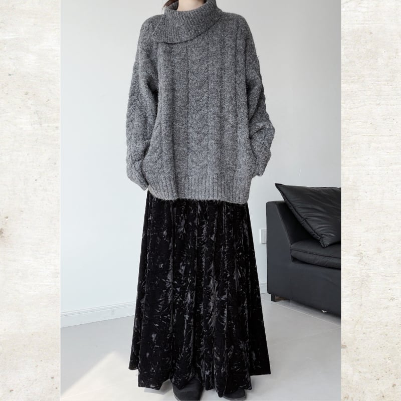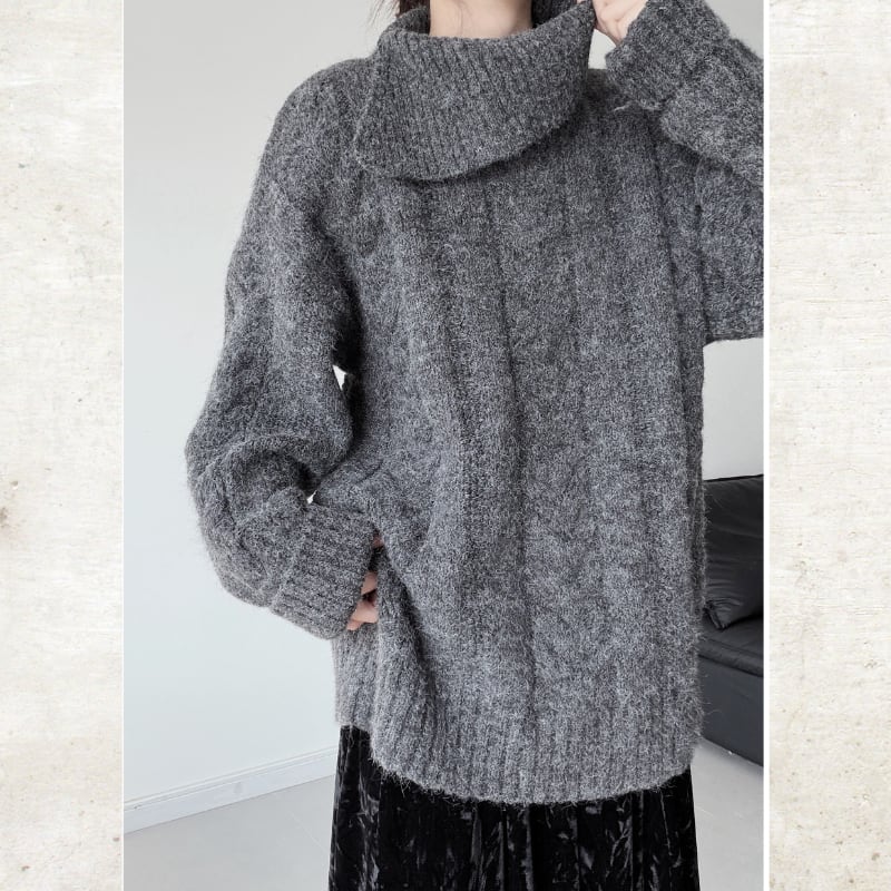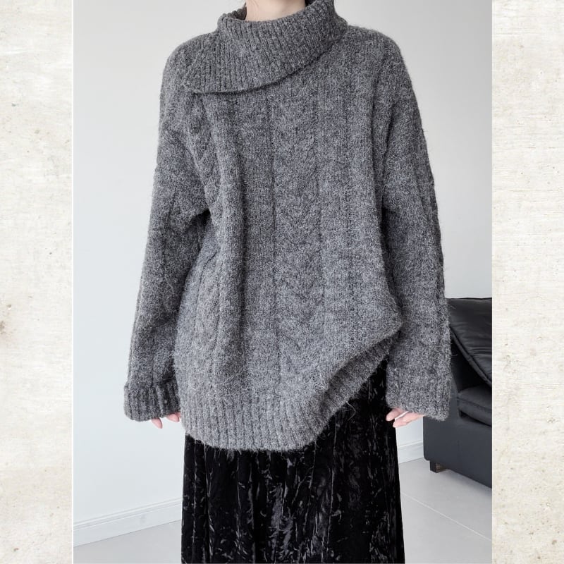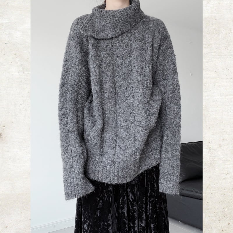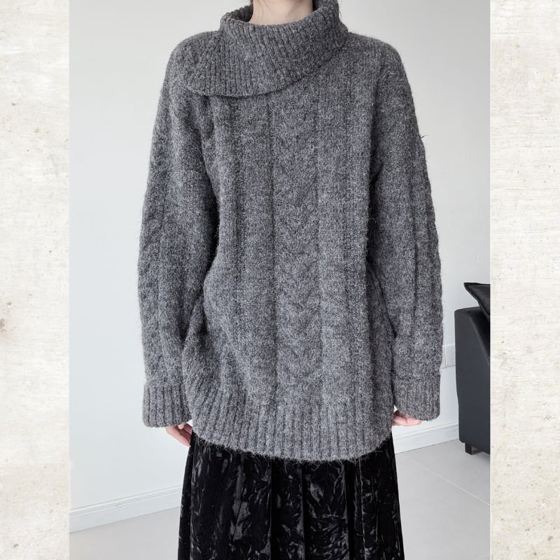 ビッグタートルケーブルニット
