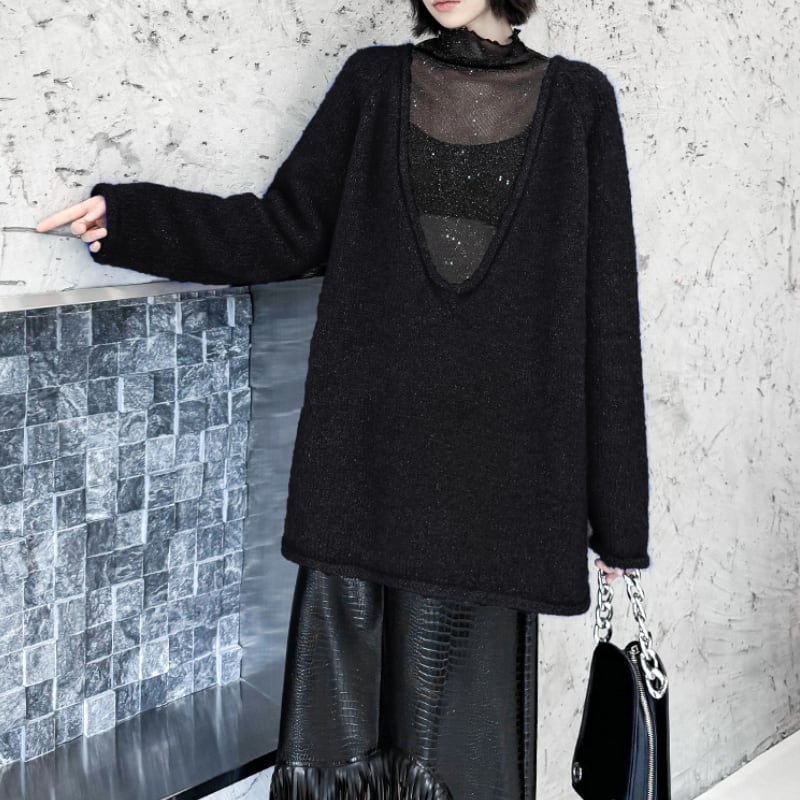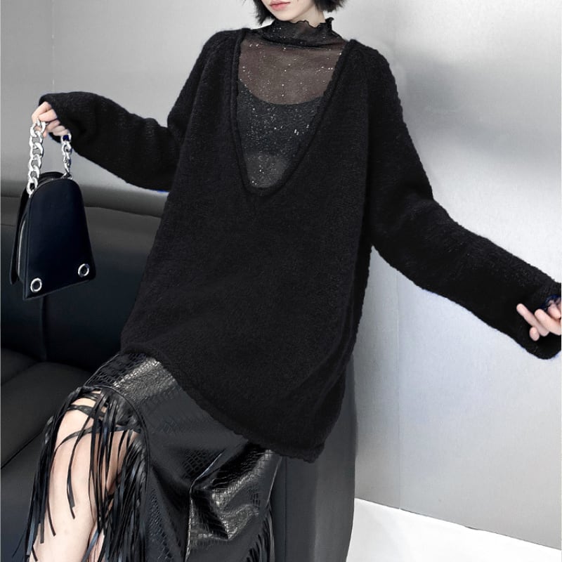 シアーインナーやタートルネックとの洗練されたレイヤードスタイルを楽しむ、主役級のセーターピースです。