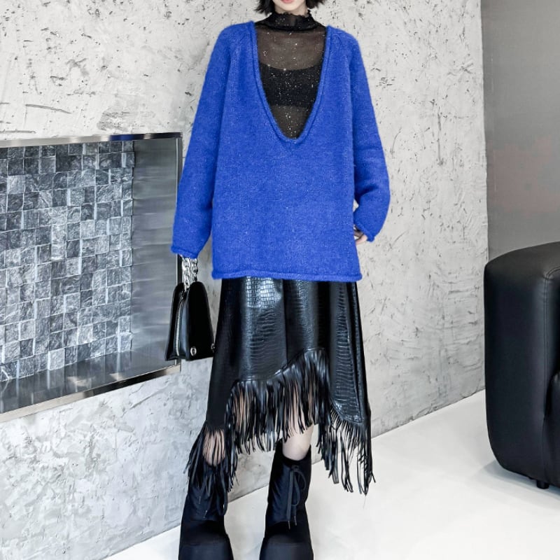 ディープVネックシャギーニット