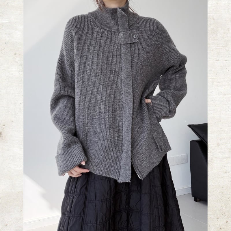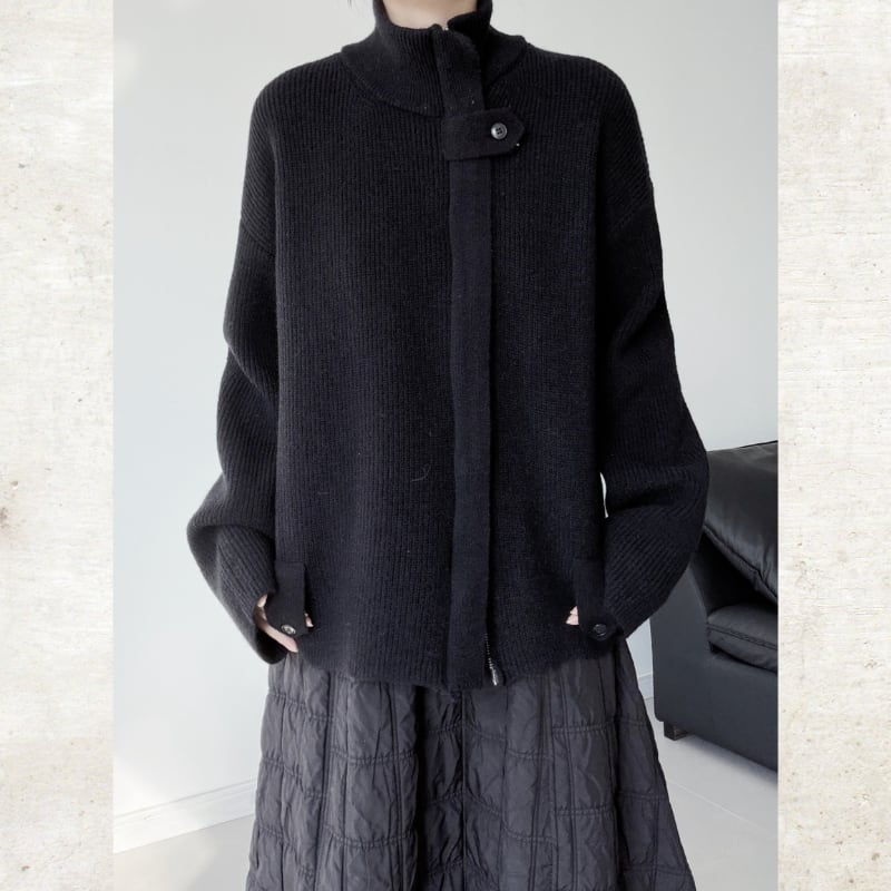 リブ編みのざっくりとした素材感が魅力のモードなニットアウター。