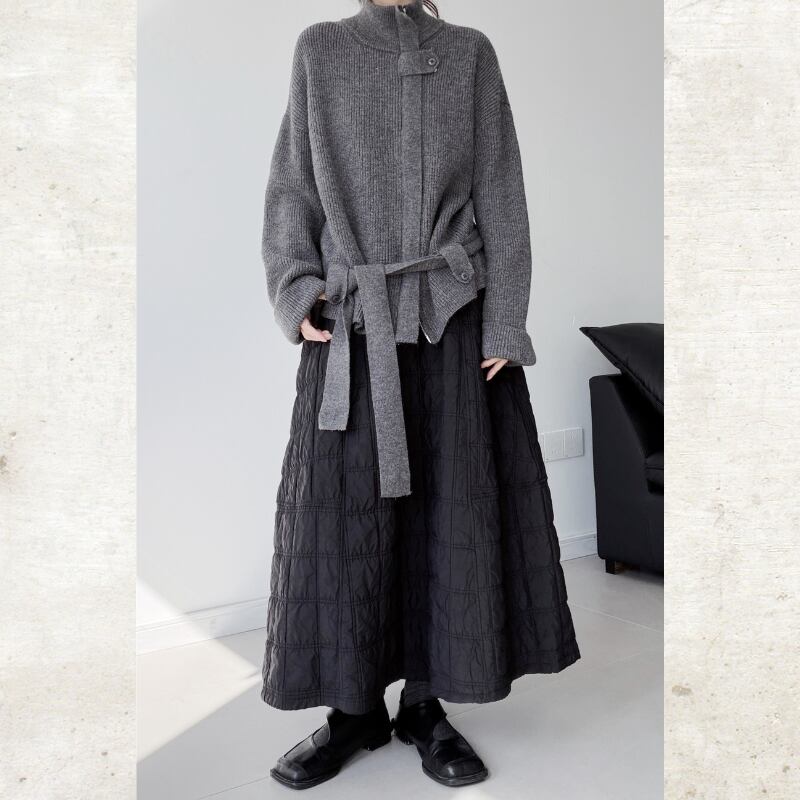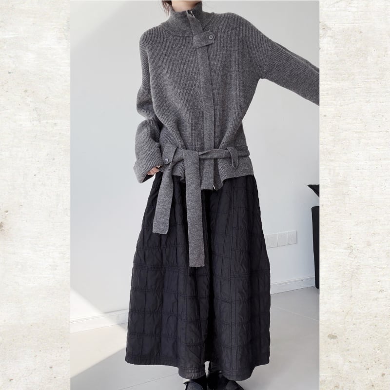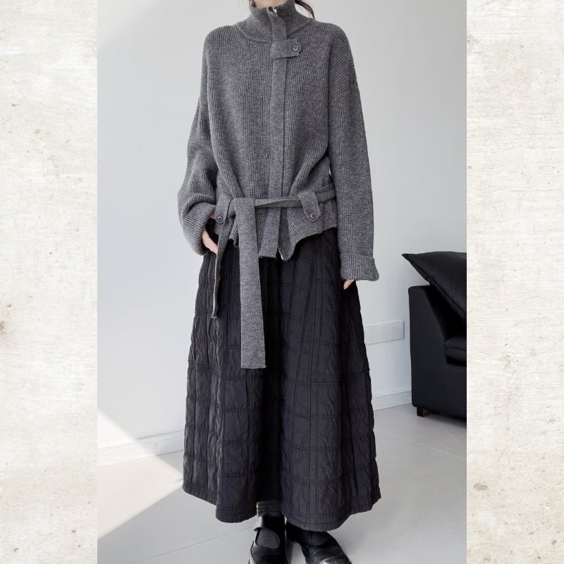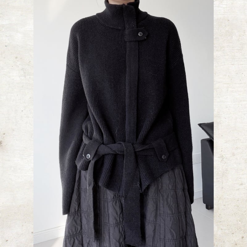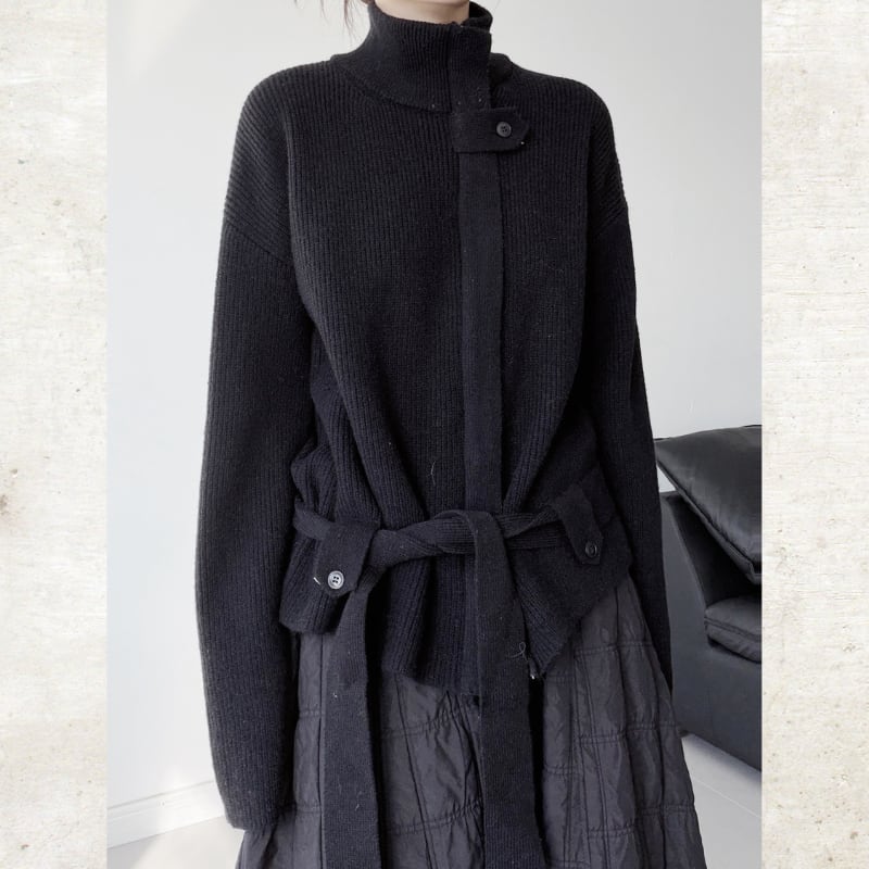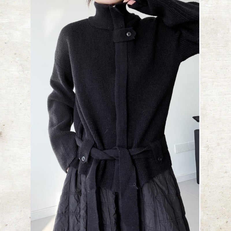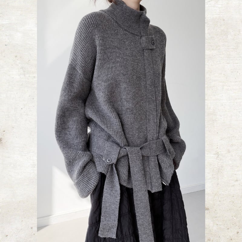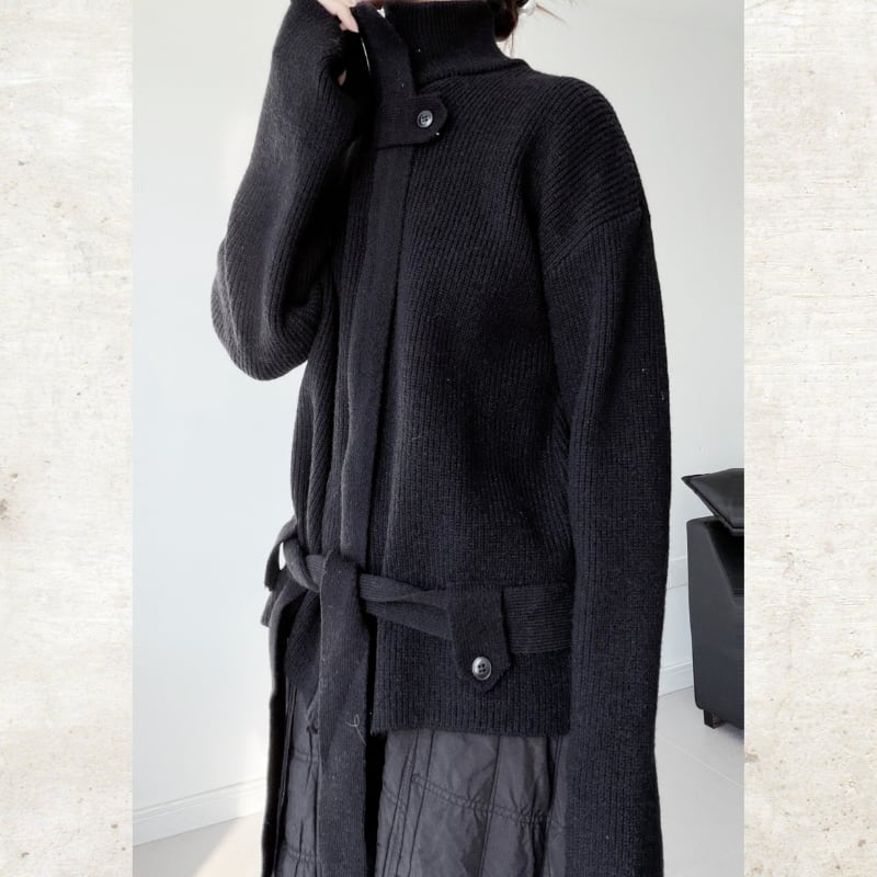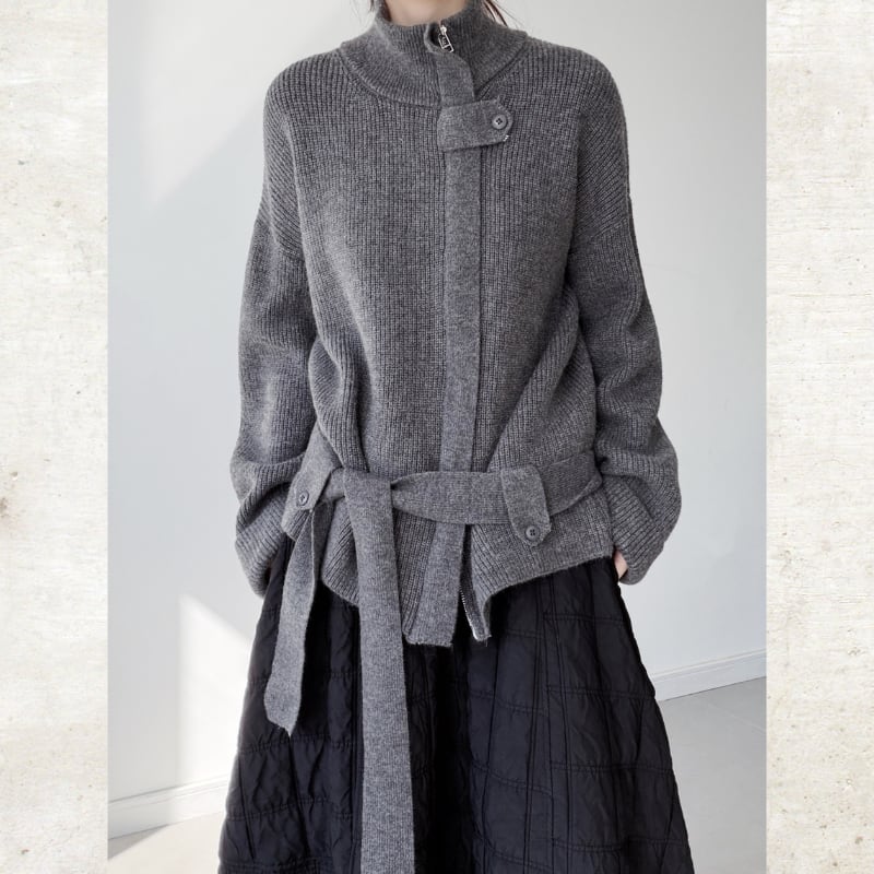 スタンドカラーベルト付ニットジャケット