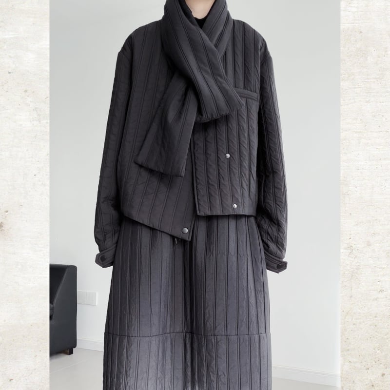 Quilted Collarless Jacket with Scarf H0457