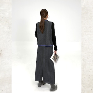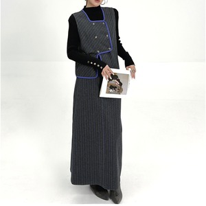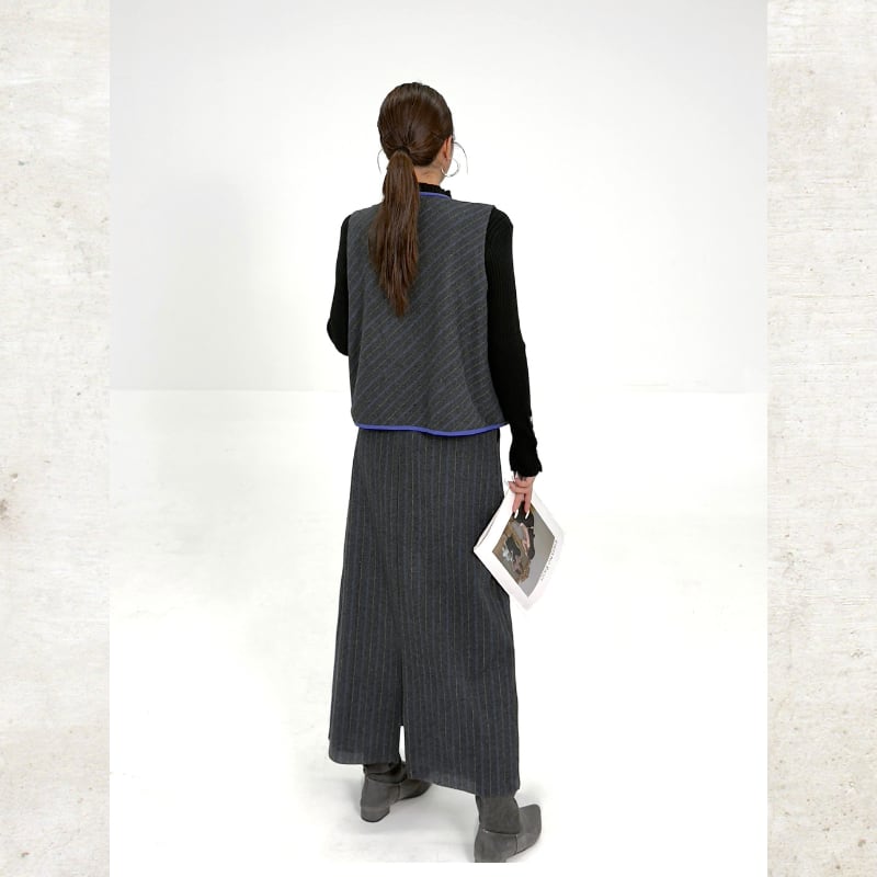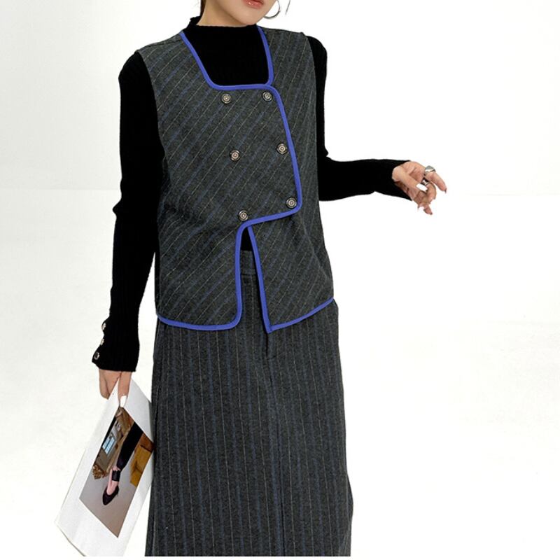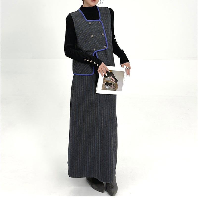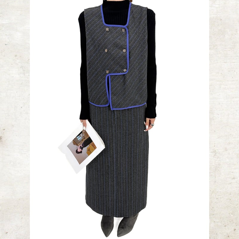 レトロ配色ベスト&ストライプタイトスカートセットアップ