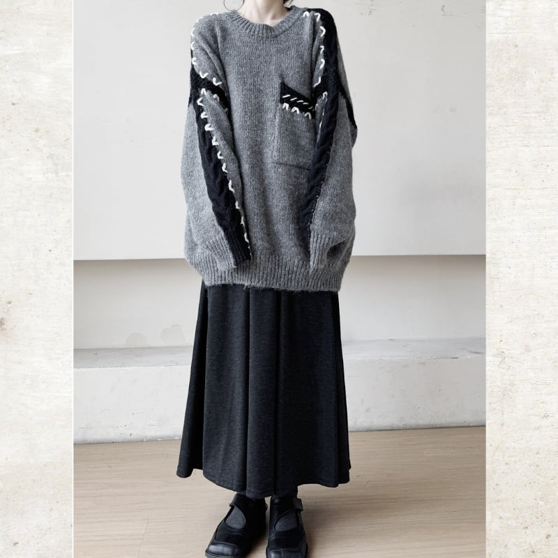 ケーブル切替 ステッチ ルーズニット