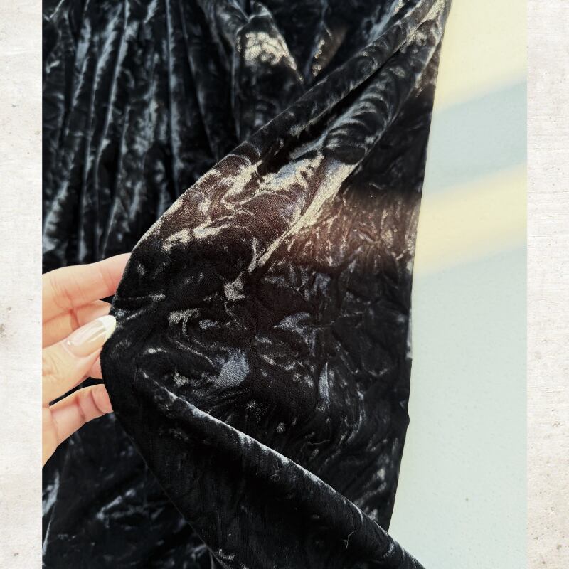 ベルベット特有の毛足が、光を受けるたびに不規則でミステリアスな陰影と濃淡を生み出し、生地の表情を豊かに演出。