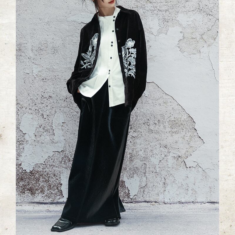 スタンドカラーに斜めに配置された前立てがモードなムードを纏うシャツ。