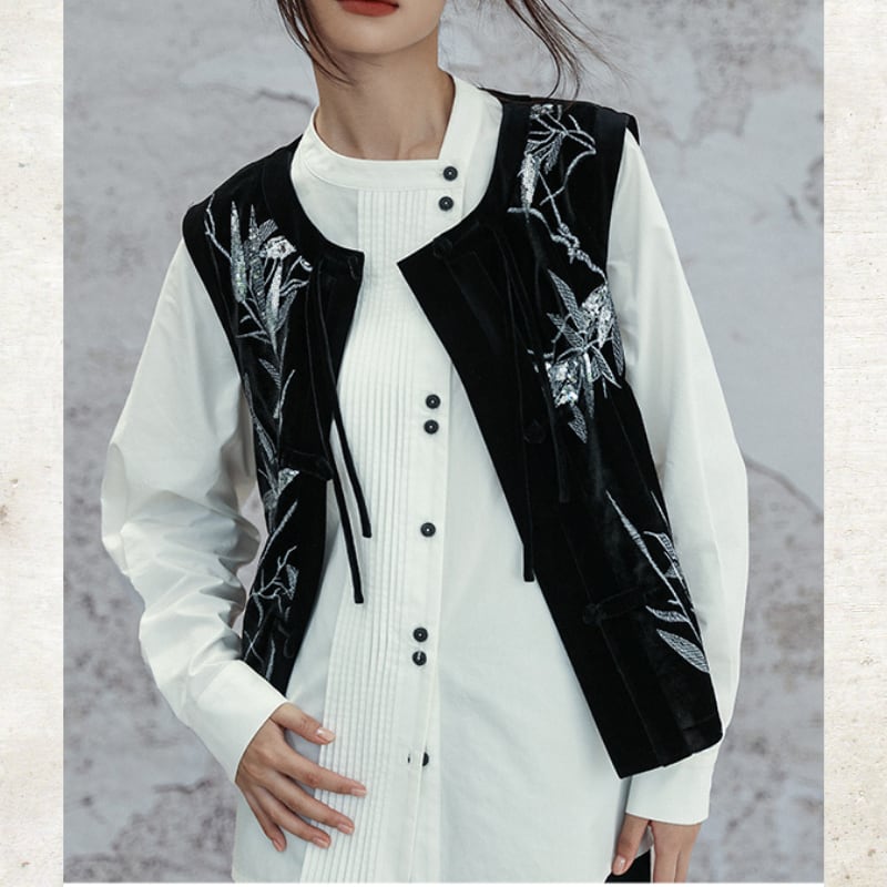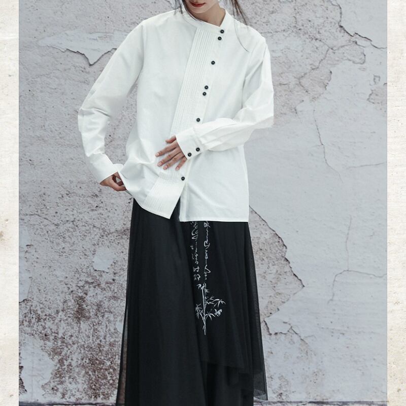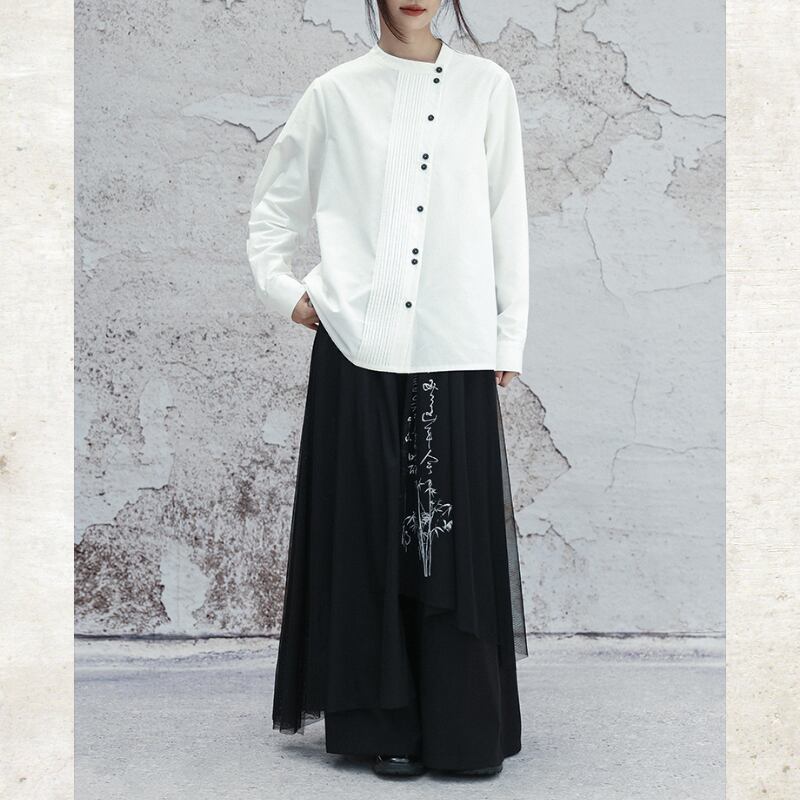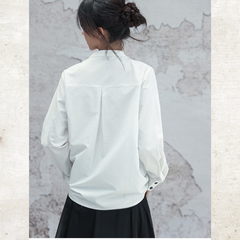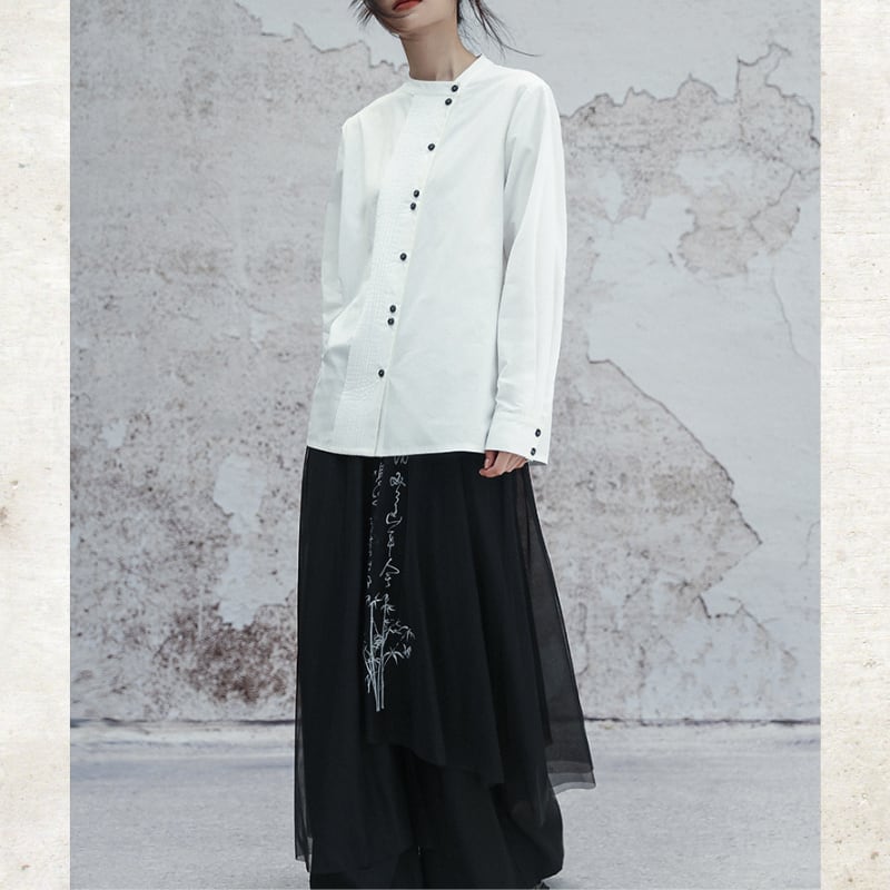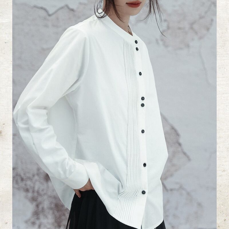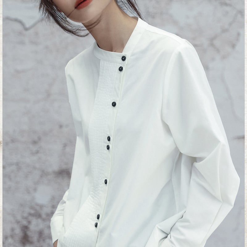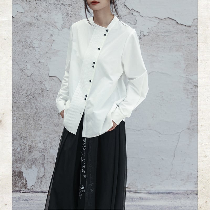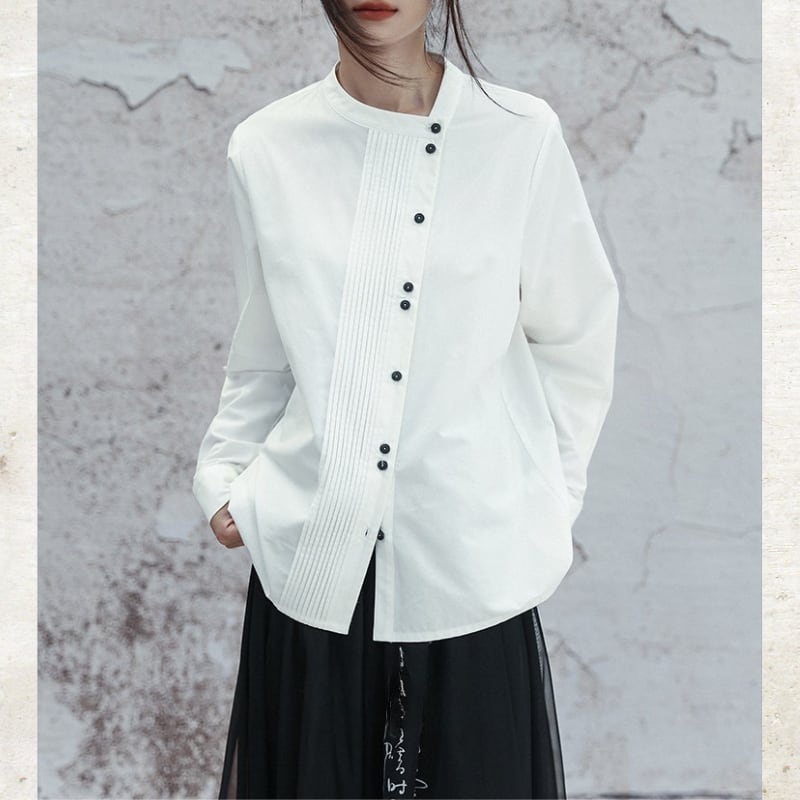 アシンメトリー ピンタック スタンドカラーシャツ