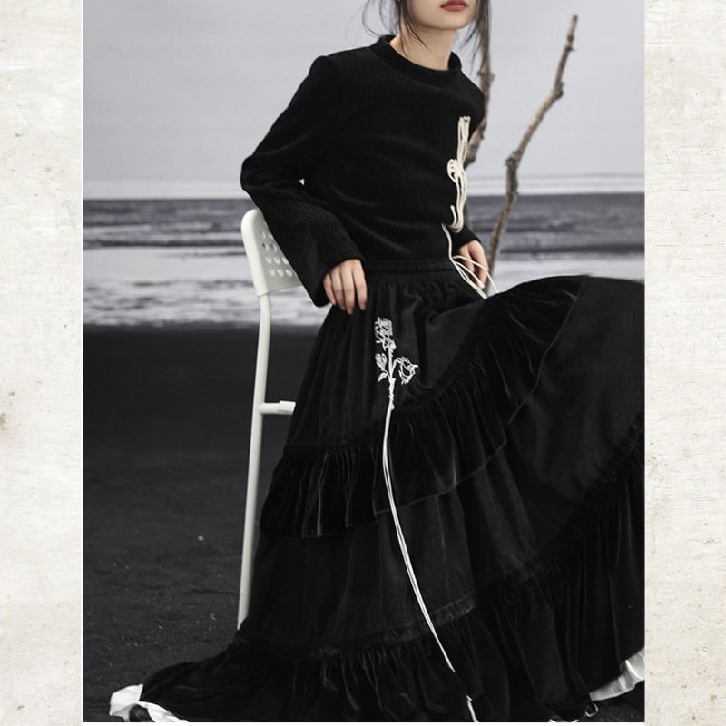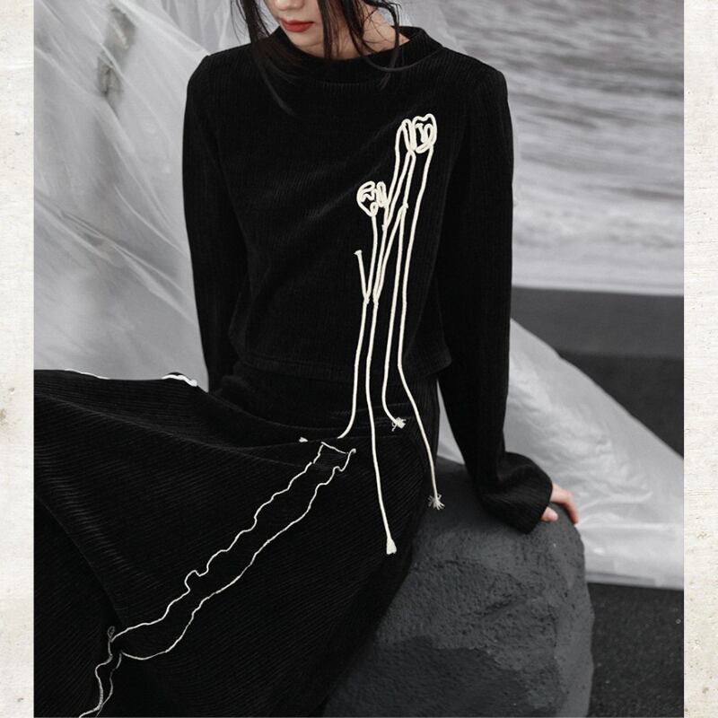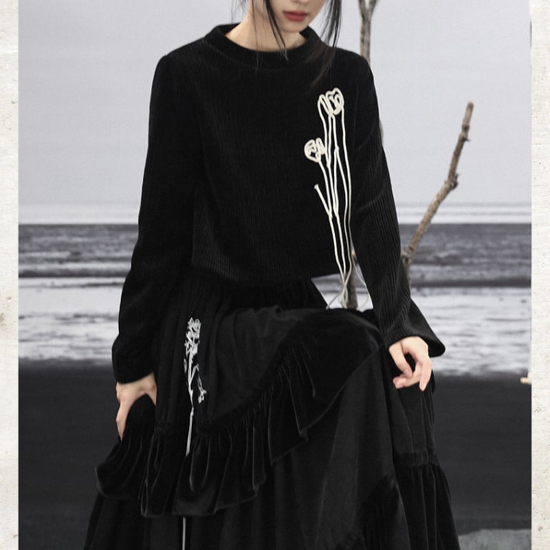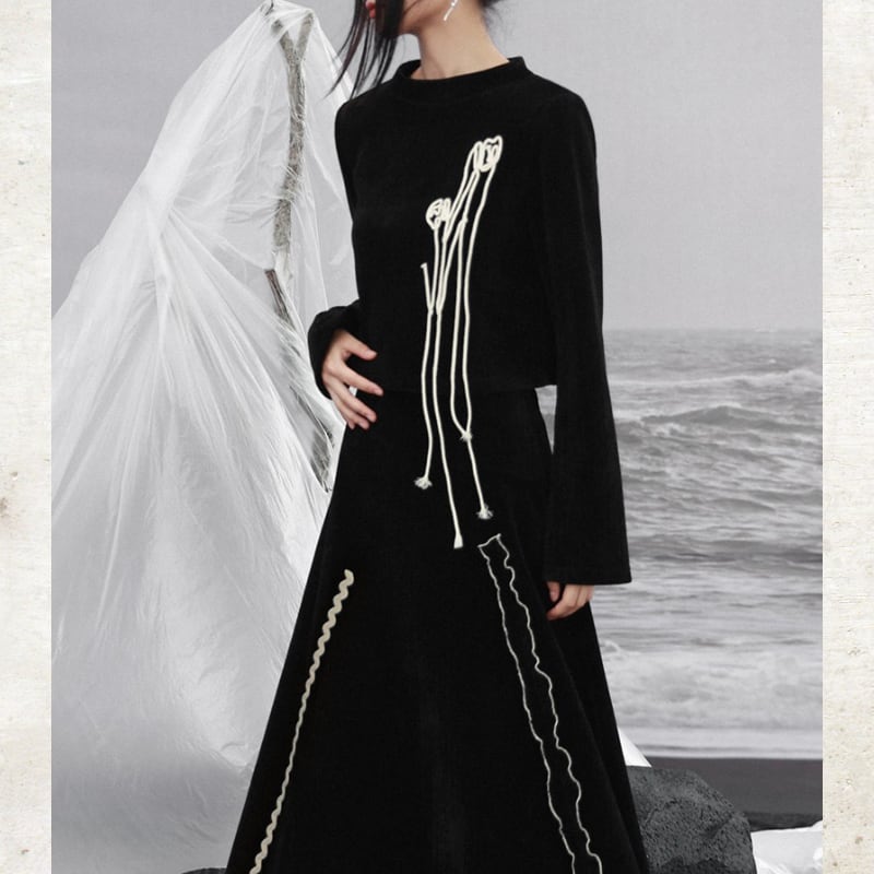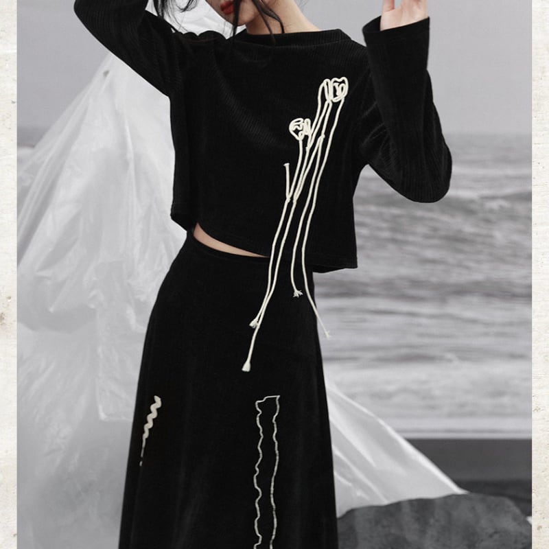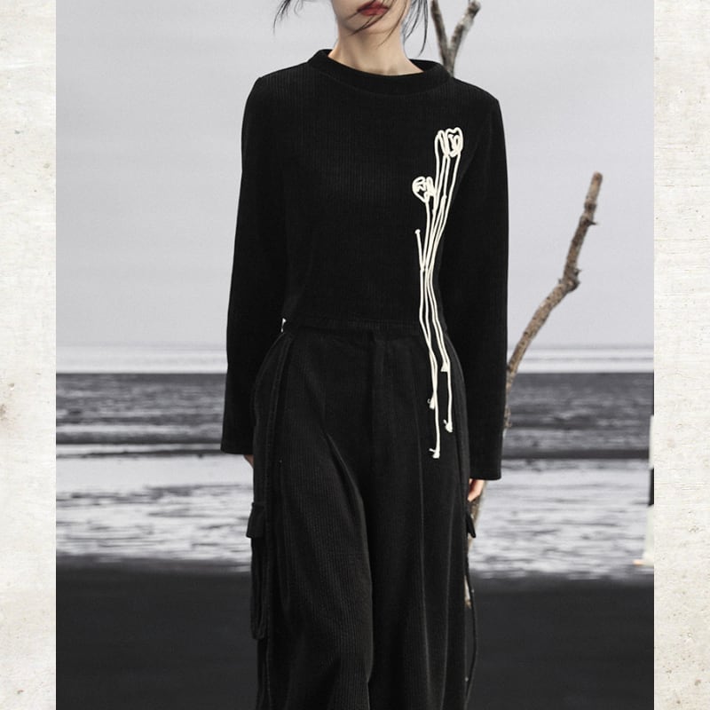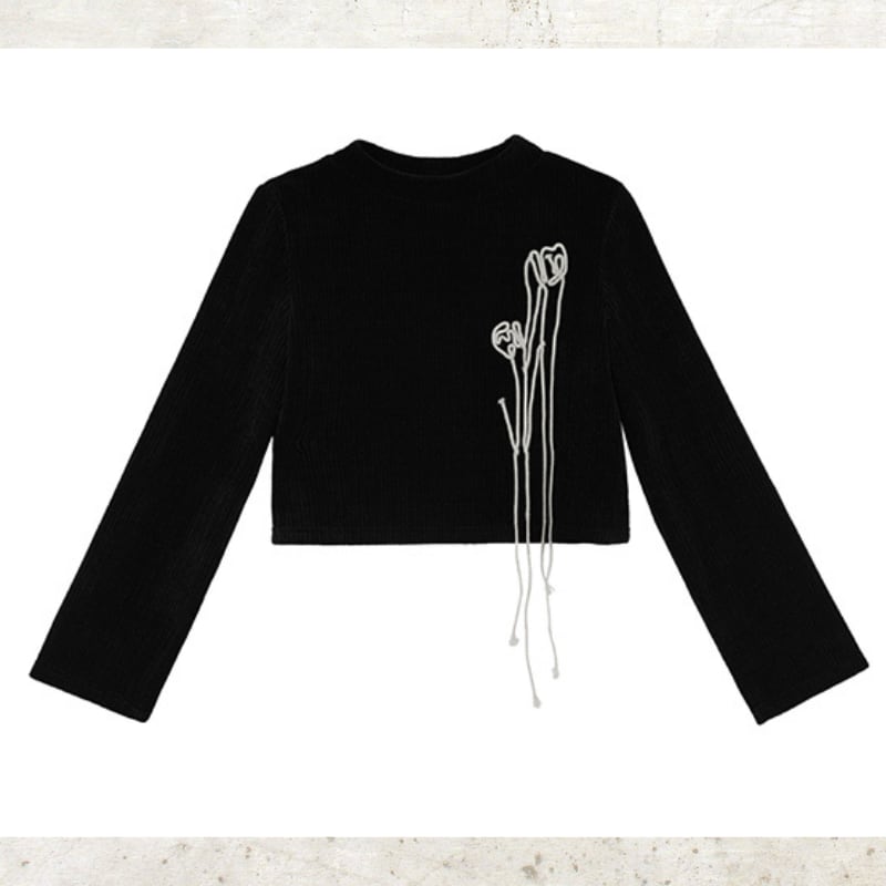 胸元には、コットンロープで描かれた立体のチューリップモチーフを配置。