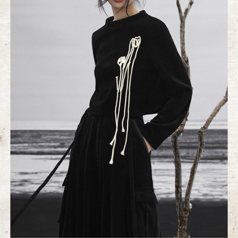 立体モチーフ ボートネック プルオーバー