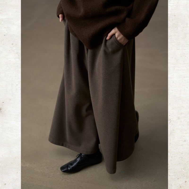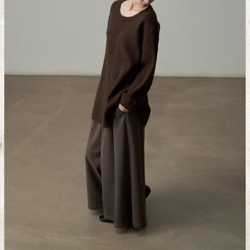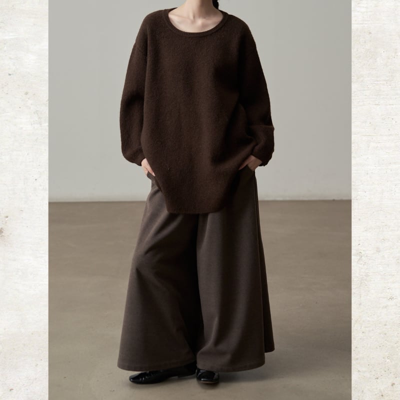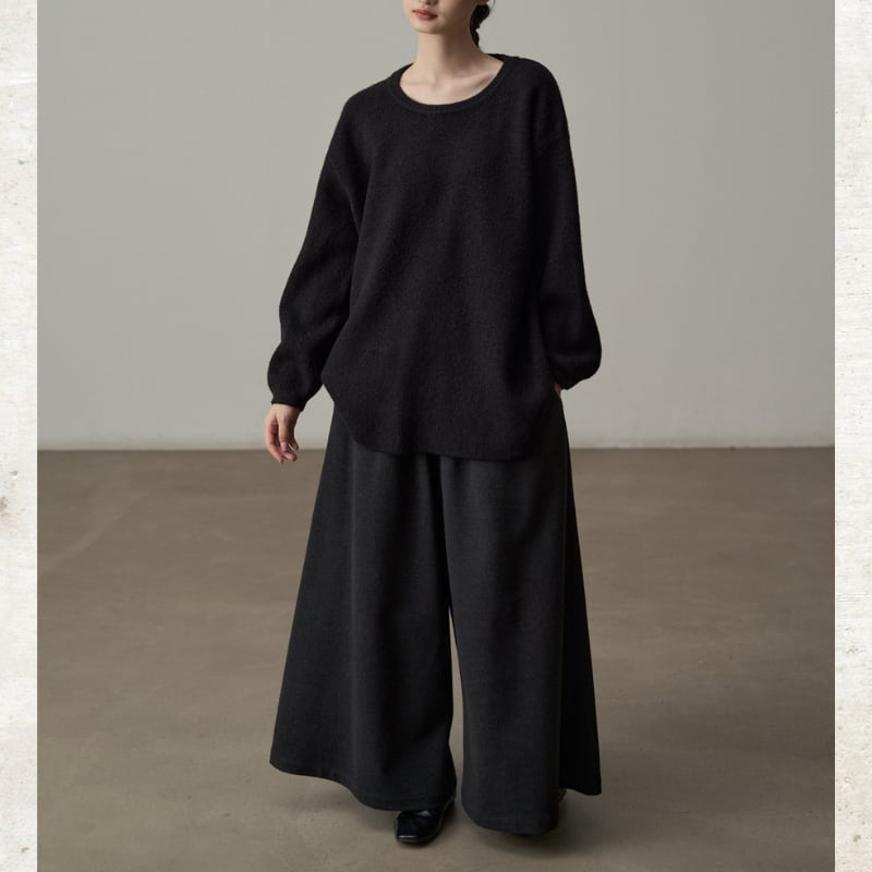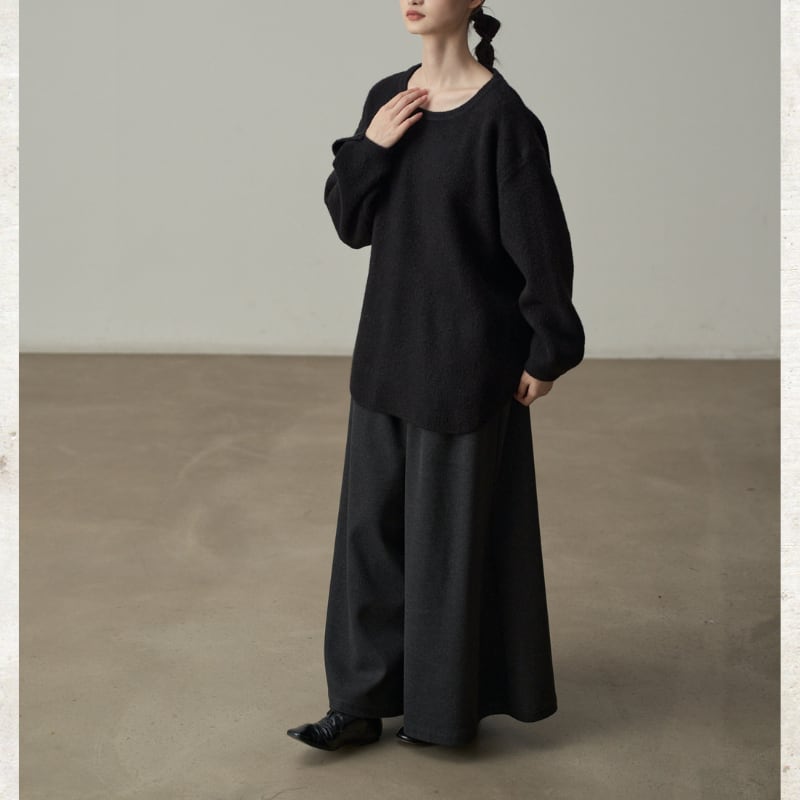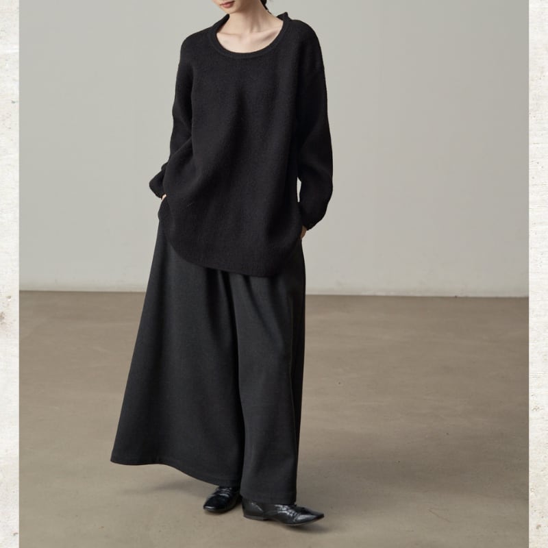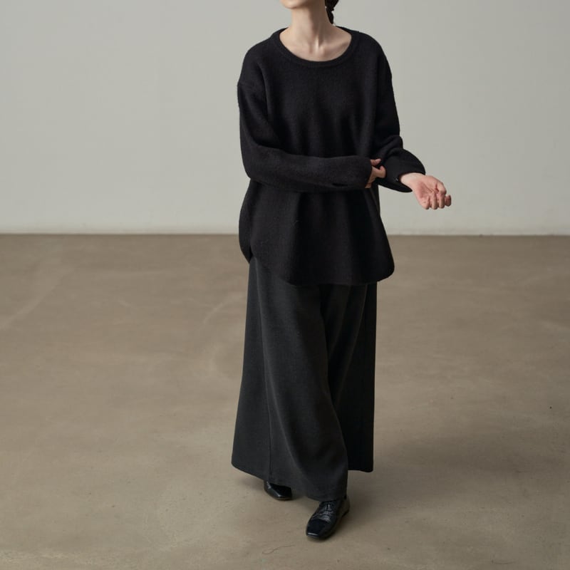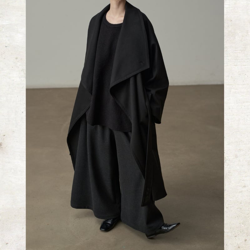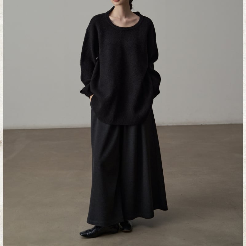 肉厚な生地を活かしたルーズなシルエットが、装いにモードなボリュームを添えます。