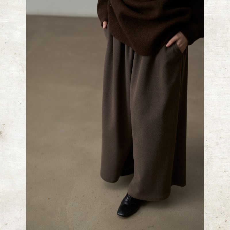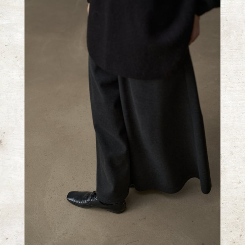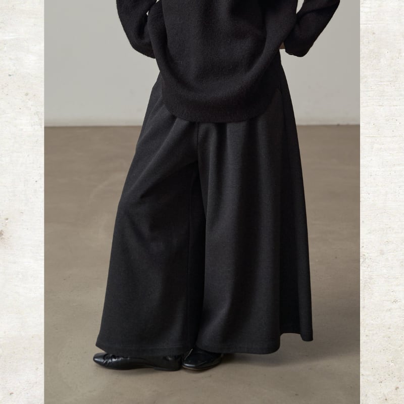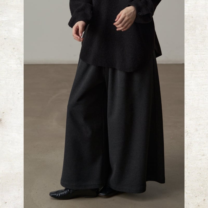 控えめなツイルの質感が奥行きを生むワイドパンツ。