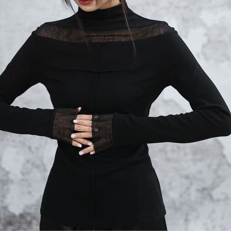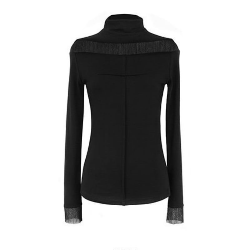 Sheer-Trimmed High Neck Top H0486
