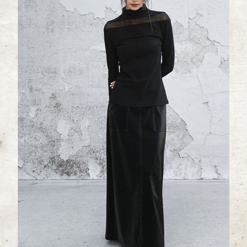 肌を透かすシアーな質感が、ミニマルなシルエットの中に上品な色気とモードな表情を浮き上がらせます。
