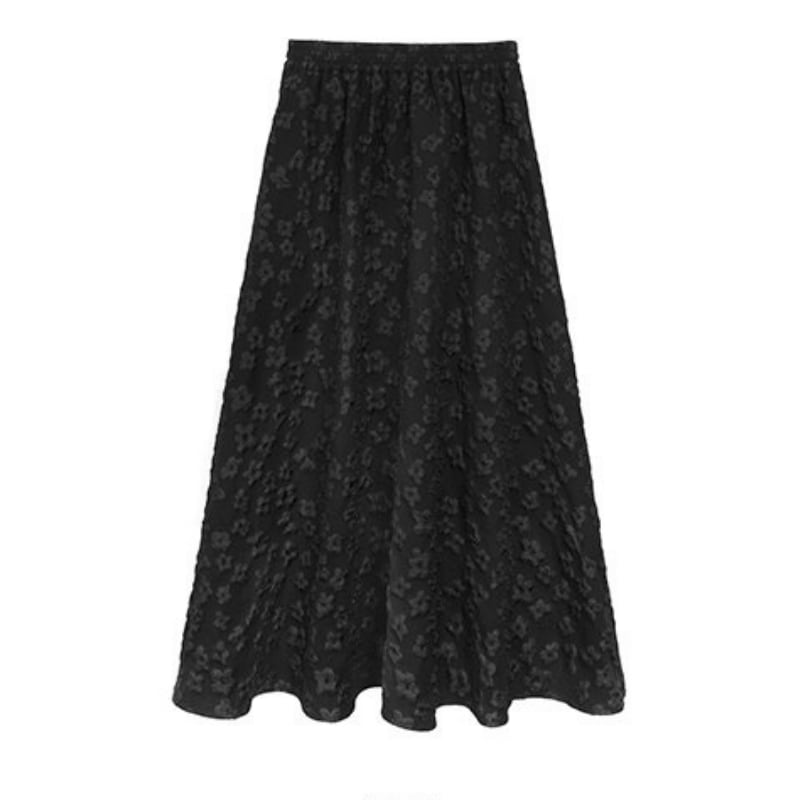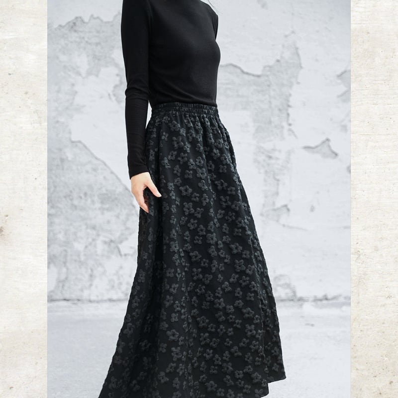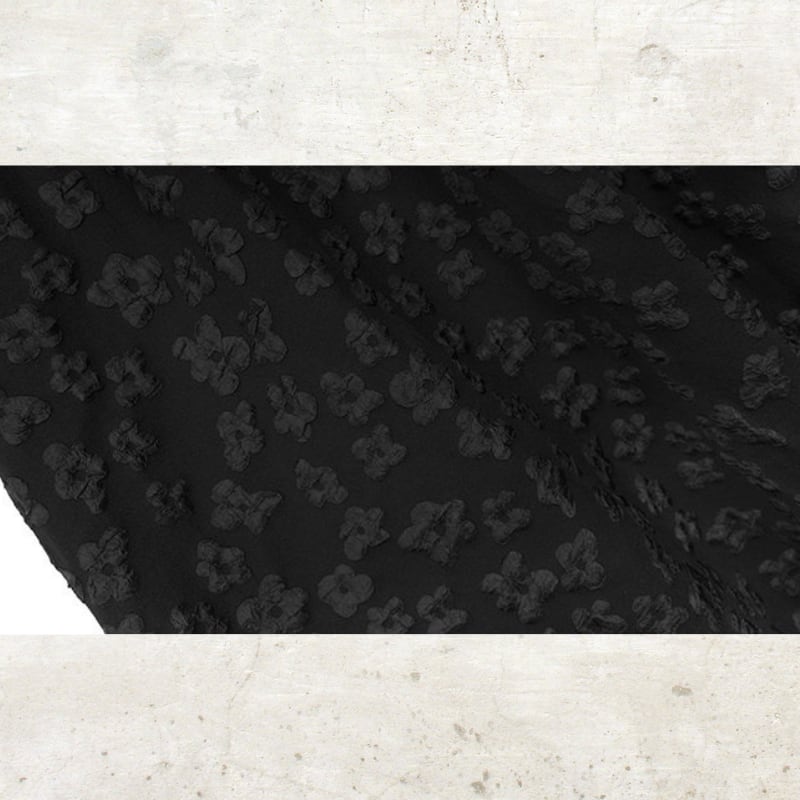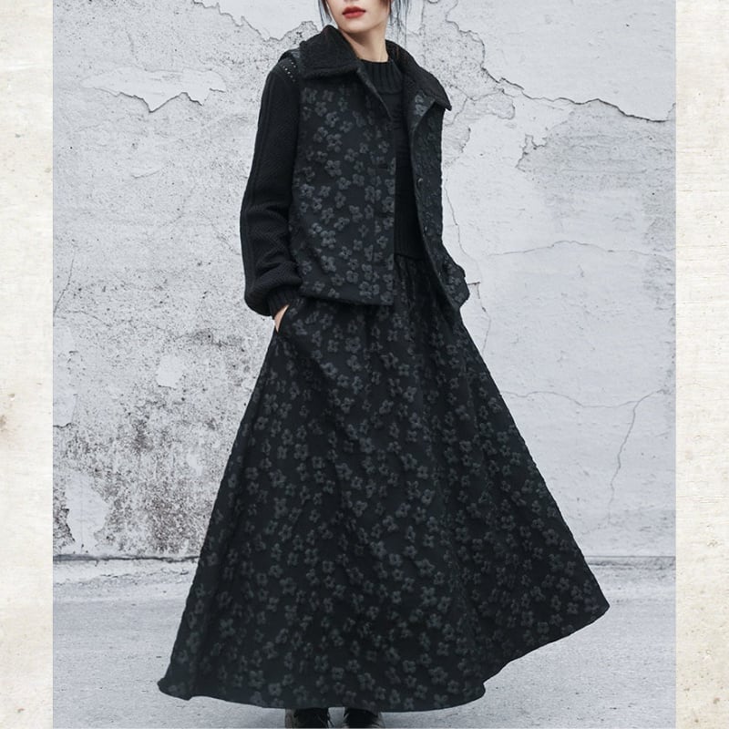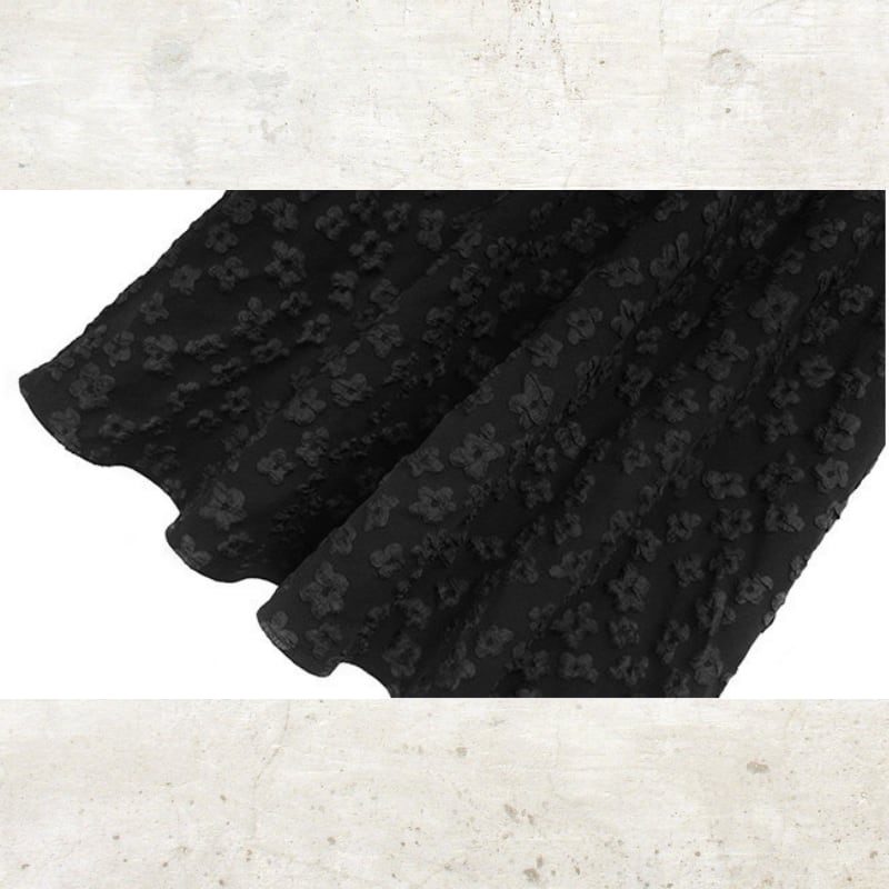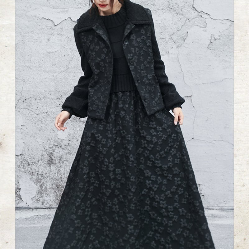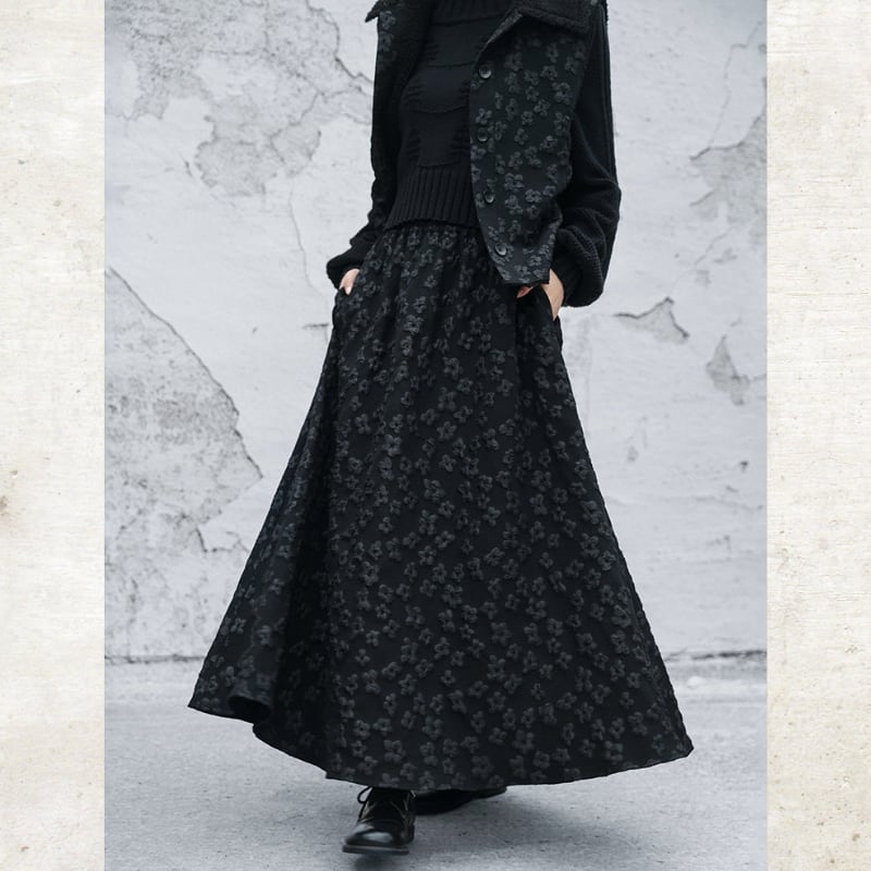 立体的なバブルジャガードの質感がダークな魅力を放つ一着。