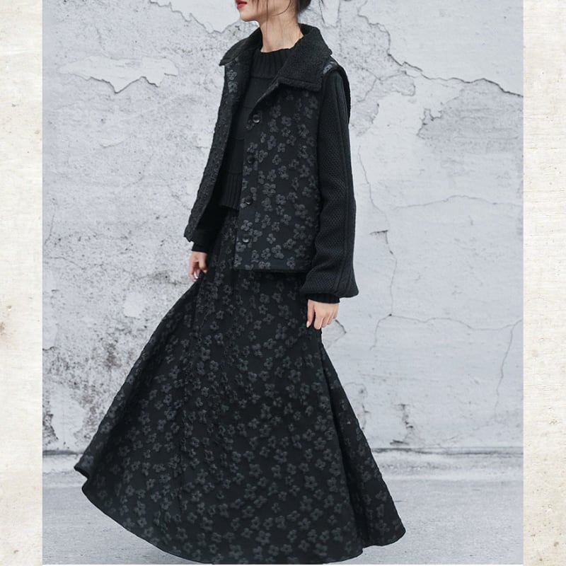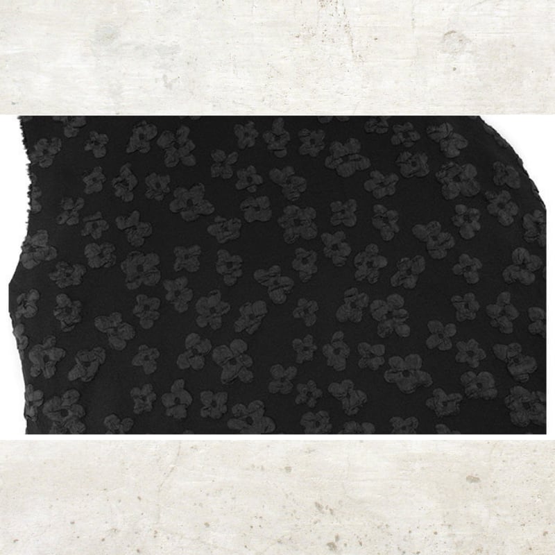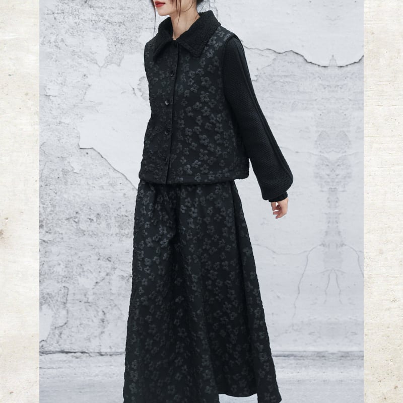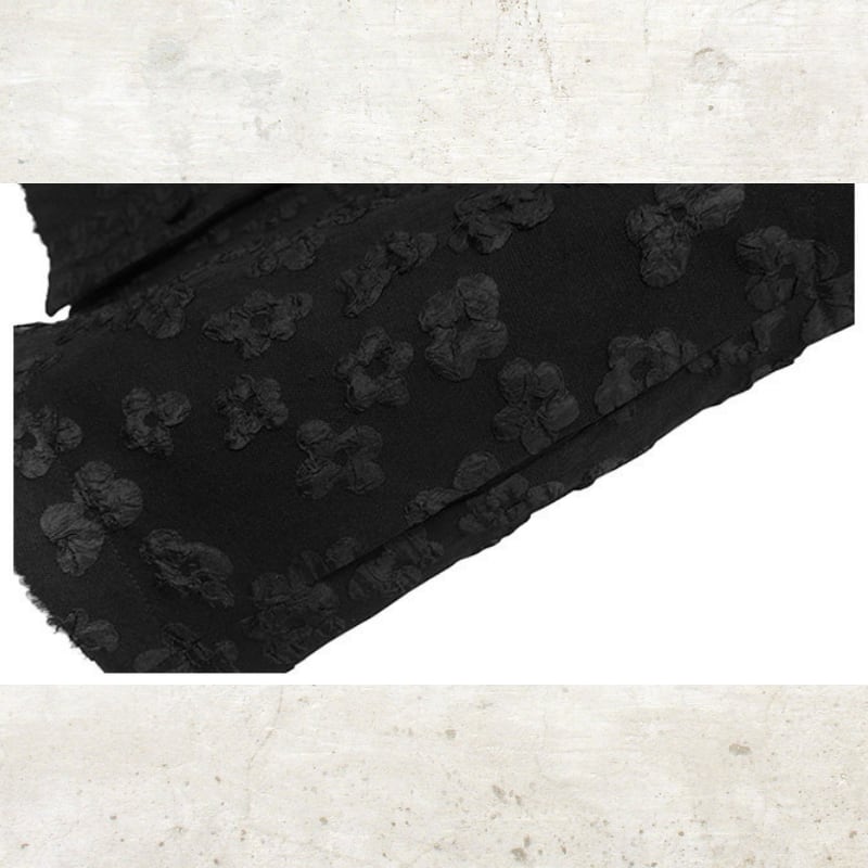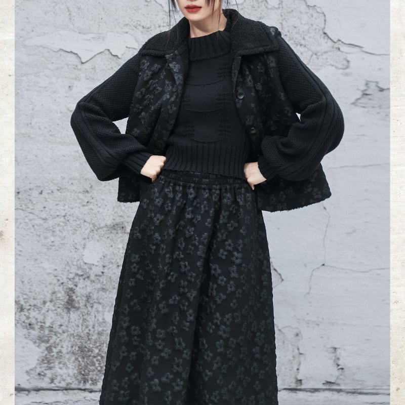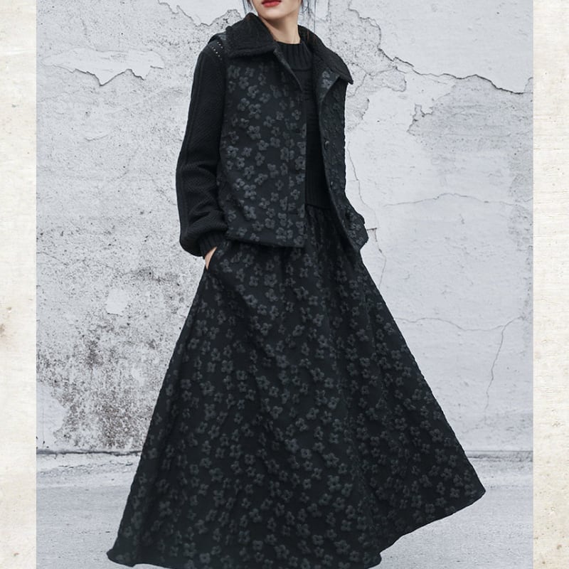 立体的なバブルジャガードの表情が、ダークな甘さを引き立てる一着。